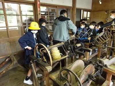 3年生が、5・6限の授業を使って社会科見学に出かけました。吉倉にある津幡町歴史民俗資料収蔵庫に行きました。昔の道具などが展示してあるところで、れきしるの方に説明してもらいながら約1時間ほど見学しました。子どもたちは古い道具に興味津々で、次々と質問をしていました。