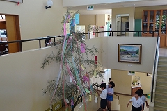 ↑もうすぐ七夕です.お天気はどうでしょうか.中央階段の七夕飾りは賑やかになってきました.