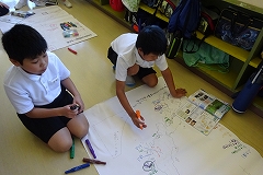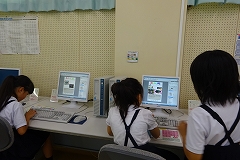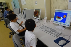 ↓ 1年生 パソコンを使って絵をかき色を塗りました.あっという間に色塗りが出来パソコンのすばらしさを楽しみました.