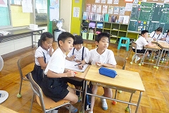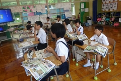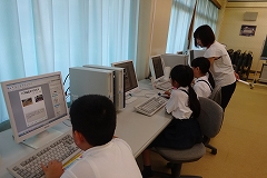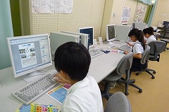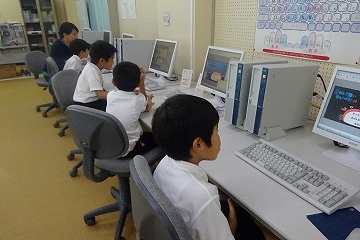 ↑こちらは4年生です.パソコンで新聞を書いています.