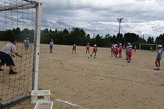 ↓ 笠野小W杯,大いに盛り上がりました.4年~6年チームで対戦しました.どちらも必死に攻めますが守りは硬く,0対0が続きます.