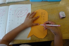 ↓ 1年 国語 自分で考えたお話を吹き出しで書くことに回を増すごとに慣れてきました.
