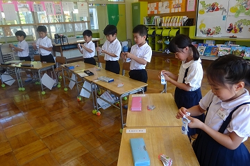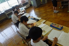 ↑ 1年生,計算カード練習頑張っています.たし算,引き算は今後の計算の基礎となり,練習すればするほど,計算が得意になります.楽しんで何回も何回もチャレンジしています.