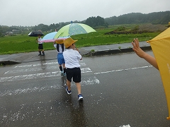 ↓1年生 雨の日も楽しいな 生活科 雨の日さんぽ どんな発見があったのでしょうか.学校から笠野公園まで雨の中を歩いてきました!
