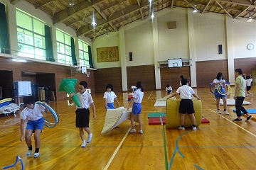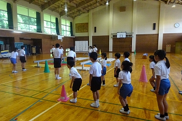 ↓ 長休み なかよしタイム 5年生が障害物競走を企画し,準備と運営をしてくれました.バラエティに富んだバランス感覚と敏捷性を鍛えられる楽しいコースでした.AチームとBティームの対戦でしたが,最後はAティームの素晴らしい追い上げで,タッチの差でBチームの逃げ切り勝ちでした.5年生の後片付けに6年生も積極的に手伝い,よい連携プレーでした.