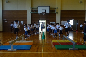 ↓ 7月の全校集会を行いました.私からは,校訓の「進取」(Enterprise)について話をしました.進取とは,「進んで取り入れる」ことで「よいと思ったこと,こうなったらいいなあと思うことを,初めにする人になろう」それは,あいさつであり,返事をすること,発言,係や委員会の仕事等何でもあります.7月は「進取の精神」を心がけてみましょう.