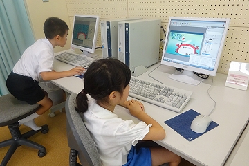 ↓ 1年生 PCで,暑中見舞いのはがきを書きました.夏の季節を感じました.もらったらうれしいはがきを書く習慣はいいものですね.