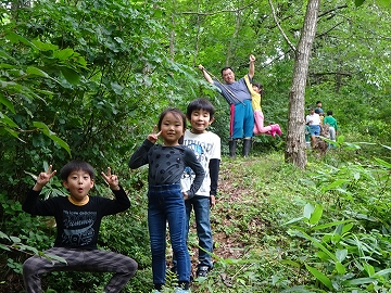 ↑ 畑の整備もしました.ひまわりがぐんぐん大きくなり,背丈を追い越しました.昼休みは,笠野の自然とのふれあいを通して自然と対話できたでしょうか.梅雨の雨をたっぷり吸って,みごとなきのこが元気に育っていてびっくりしました.