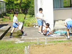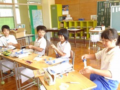 ↓ 4年理科 自分の考えた遊び体験から、空気と水を押し縮めたときの感触を体感しました。違いをそれぞれに表現して実感として残ったようです。