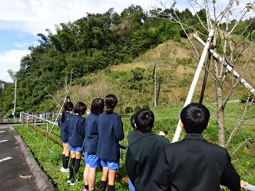 ↓ 6年理科 地層のでき方の学習で、この地域で地層がみられる場所がありましたので実物を見て観察してきました。何百万年、何億年昔にこの地域が海底や川底であったこと思うと、「はるか昔の時代」のスケールの大きさに驚きます。