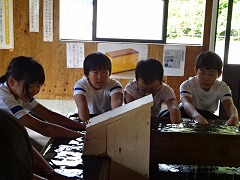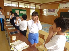 ↓ 4年生 閉じ込めた空気の学習です。きょうは,筒に空気を詰め込み,押したときの手応えを感じました。たくさんの不思議をどんどん出てきました。体験することで疑問が湧き,学習意欲が高まります。