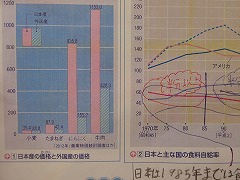↓ 5年 社会 日本の食力生産についての学習です。3つの資料を読み、関連させて思考する学習をしていました。資料を見ながら、生活とつなげて疑問も出し合い、深まりある話し合いをしていました。日本の小麦の自給率は低いのに、実際はパンや麺類はよく食べられている、輸入しているのかな、輸入していることは外国に頼ってしまうので、外国が地震や台風で生産できなくなることも起きるし、外国との関係も経済制裁で危うくなる可能性もある、大丈夫かななど、ニュースを見て現状を考えることもできて、知的好奇心がどんどん高まっていきました。学習する楽しさを感じている子供たちです。