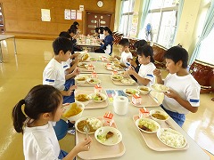↓ 一生懸命勉強した後の給食は最高です。今日は、カレーライスでした。ごはん増量!