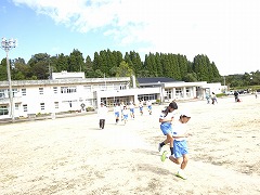 ↓ 長休みの体力づくりです。10分間自分のペースで走ります。高学年はいしかわっこ駅伝の練習も兼ねて,タイムを計測して自分に挑戦しています。