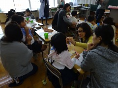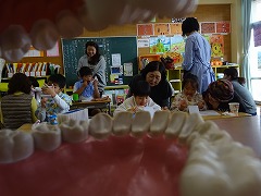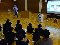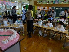 ↓ 1.2年生の歯磨き教室 虫歯になっている児童は、ほとんどは6歳臼歯が虫歯になっています。6歳臼歯は高さが低いので、なかなか歯ブラシが当たらないのです。虫歯予防には、仕上げ磨きは小学生の間まだまだ必要なこと、甘いものを食べると口の中は酸性になるので、就寝前、2,3時間は甘いものを食べず、口の中を中性にしてから寝ることを教えていただきました。今日は、歯科衛生士さんと津幡町の保健師さんからご指導いただきました。保護者の皆様もご参加ありがとうございました。