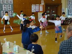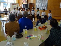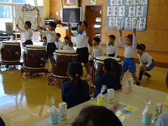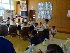 ↑歌を披露したり、「でんでこ太鼓物語」から「第1部でんでこ誕生」の迫力ある演技を披露しました。でんでこのリズムは息がぴったり合っていました。