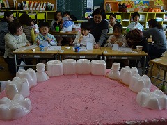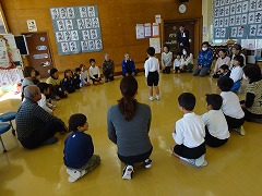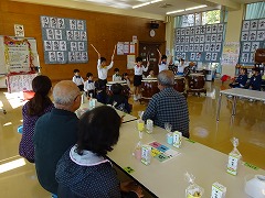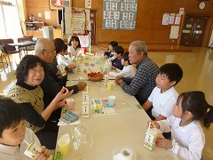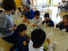 ↓最後は、手作りサツマイモスティックをいただいて、和やかに団らんしました。2年生の子が保育園のお友達を袋の留めてある針金をさっと外す手伝いをするなど、ほほえましい姿も見られ、うれしかったです。本日は、皆様、本日はご来校いただきありがとうございました。