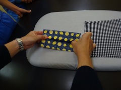 ↓5.6年 家庭科 波縫いの練習をしています。縫い目をそろえて縫う練習です。ミシンがあっても、手縫いは基本ですので、作品作りを楽しみながら練習しています。