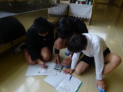 ↓ 5年 算数 歩数を図って平均の距離を計算で求めました。実際の生活に基づいた算数は理解に大いに助けてくれます。