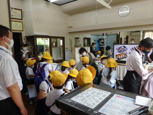 本日、1,2年生が生活科の学習で町探検に出かけました。行き先は、「かやもと菓子舗」さん、「理容たにい」さん、「道村電機水道」さんでした。お仕事の内容を教えていただいたり、子どもたちからの質問に答えていただいたりしました。お仕事中にも関わらず、どのお店でも子どもたちを温かく迎えていただき、地域の方々のやさしさを今日も感じることができました。本当にありがとうございました。
