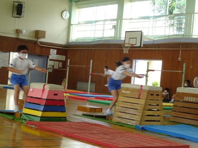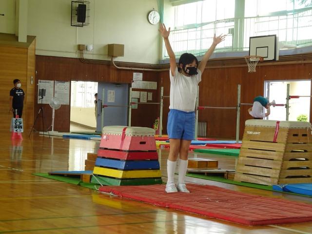 6校(英田、津幡、大白台、刈安、萩野台、笠野)の4年生児童が集まって、器械運動交歓会が中条小学校で開催されました。本校の4年生は、大勢の前でも堂々と演技することができていました。