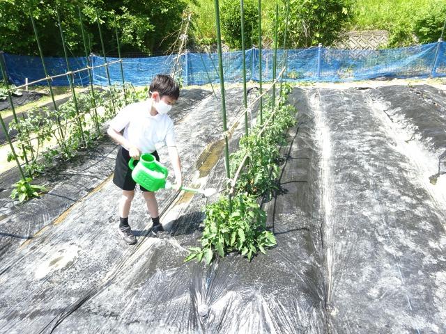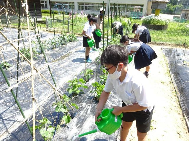 「畑の先生」のお世話のおかげで大きく伸びてきた野菜の苗に、今日は、3,4年生が水やりをしていました。せっかくの昼休みだけど、しっかりとお世話ができていた3,4年生でした。 もっと大きく育ってね!