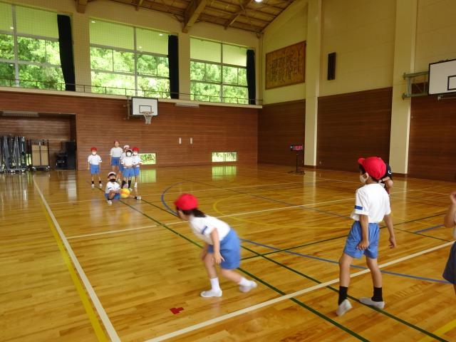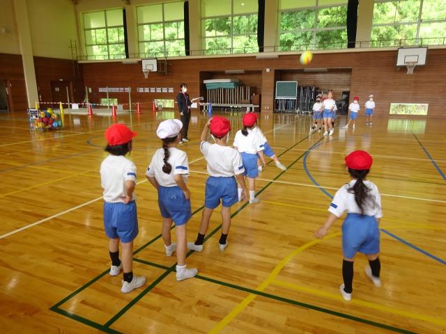 1,2年生の様子を見ていると、投げるのを失敗したときに「ごめん」、上手にキャッチした人に「ナイス」などの声がよく出ていました。体力アップと同時に、やさしさもアップしているようです。