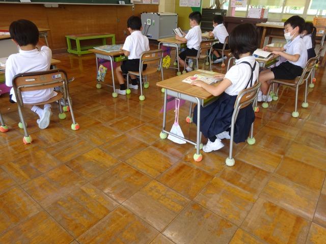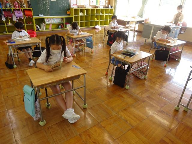 本校では、金曜日の昼休み後を読書の時間「よむよむデー」としています。1,2年生も真剣に本を読んでいました。