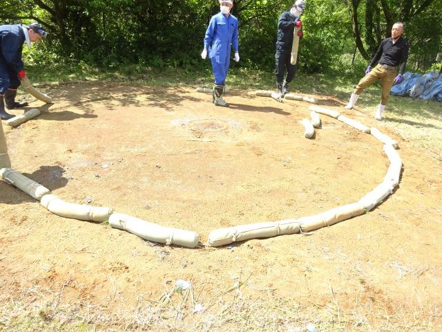 児童とお母さん方には、主に運動場の除草作業をしていただきました。5,6年生は、笠野公園や笠野トンネル付近も除草してくれました。お父さん方や地域の方には、各ご家庭所有の機材を持ち込んで、草刈り作業をしていただきました。高台にある学校を取り囲む斜面や校舎裏の「笠野の森」に向かう斜面がとてもきれいになりました。作業後には、3年ぶりに開催される予定の相撲大会に向けて、土俵の整備もしていただきました。