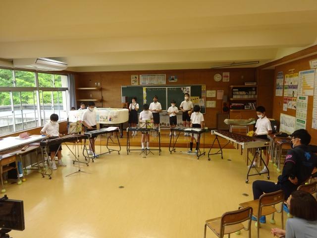 5,6年生が音楽の授業で練習した「ラバーズコンチェルト」の合奏を、数名の職員に披露してくれました。