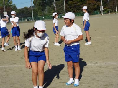 気持ちよく晴れ渡った青空の下,6年生は楽しみながら走ったり,スキップをしたりして