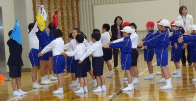 昼休みや長休みに,各団からたて割り班が1班ずつ,体育館に集合して,