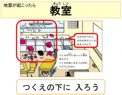 学校で地震が起こったら・・・自分の身を守るポイントを学びました。