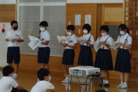 図書委員会の「トビウオのぼうやはびょうきです」の読み聞かせ、代表委員会の広島の原爆,第5福竜丸の学習発表がありました。