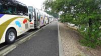 学校前には,12台のバスが並びました。