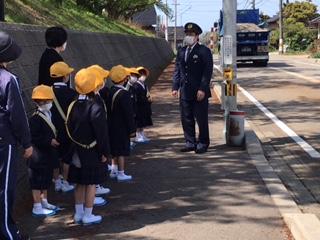 二宮駐在所の道善さんから、横断歩道の渡り方や安全確認の仕方を