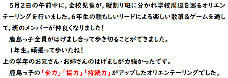 5月6日に全校集会を行いました。3年生4年生は体育館に集合!