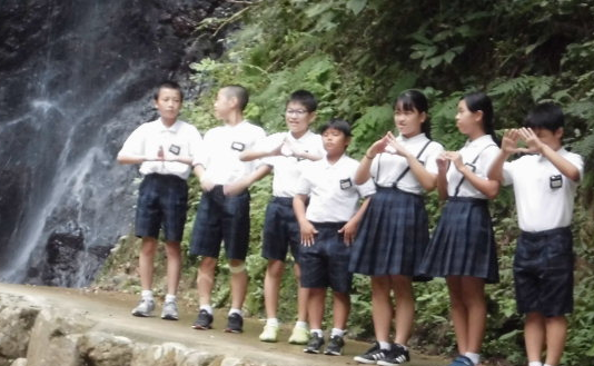 9月12日に,鹿島小を代表して,6年生が不動滝前で担当のパートをビデオ撮りしました