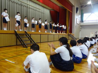 練習した歌を全校の鹿島っ子に披露してくれました。