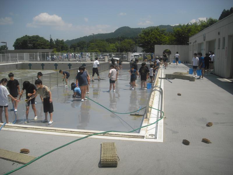 今日は良いお天気のもと,午前中は5年生が,午後からは6年生が学校のプール掃除に励んでくれました。