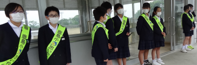 歩く時は,6年生が先頭と最後尾につき,下級生を見守ります。