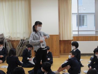 4年生を対象とした防災教室を,防災士の方をお招きして行いました。災害が起こった時の行動や,新聞紙を使ったスリッパづくりなど,身近なもので身を守る方法について教えていただきました。改めて防災についての意識を持つことができました。