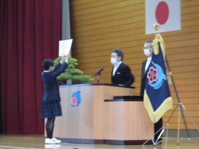 修了式を行いました。感染防止のため,リモートで行いました。校長先生から各学年に修了証書の授与があり,全員がそれぞれの学年を修了することができました。今年は新型コロナウイルスによる臨時休業から始まり,様々な学校行事なども普段通りには行えない中,この一年で子どもたちは本当に心も体も大きく成長しました。保護者の皆様はじめ,地域の皆様のご理解・ご協力に心から感謝いたします。ありがとうございました。