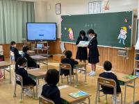 4月8日(金),今日から1年生が登校してきました。玄関で自分の下足箱を探していると,6年生が優しくサポートしてくれました。教室でも6年生がランドセルの片づけ方や机の引き出しの使い方を教えてくれたり,絵本の読み聞かせをしてくれたりしました。優しい6年生のおかげで,1年生も元気に安心して学校生活初日を送ることができました。