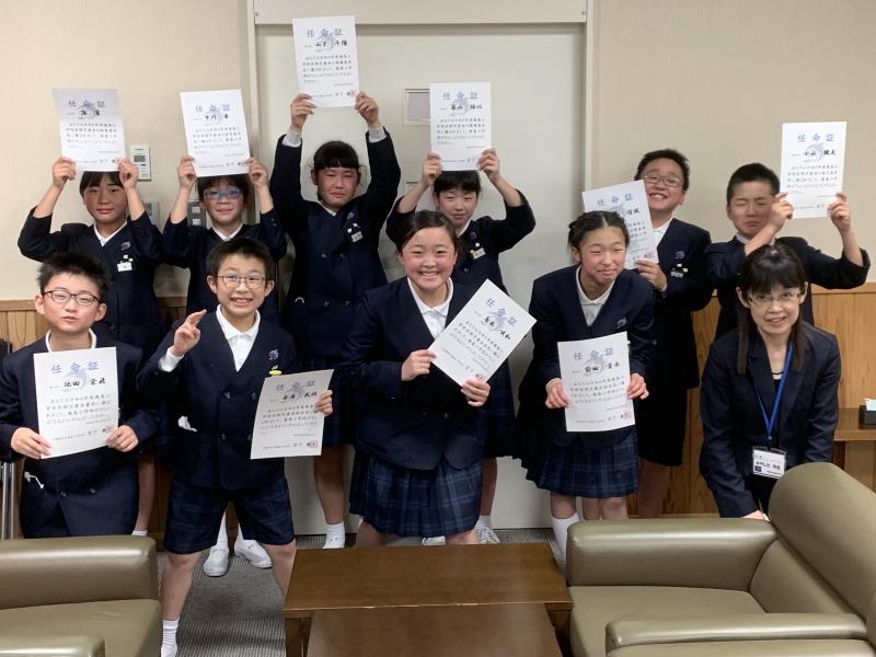 やる気満々の児童会役員 委員長に任命証をわたしました!