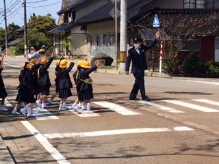 二宮駐在所の道善さんから、横断歩道の渡り方や安全確認の仕方を