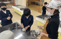 その後,5kgの炊きたてのお米で塩おむすびをにぎり,みんなでパクパク!お米のおいしさを堪能しました。