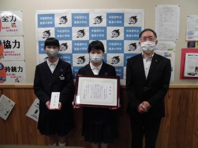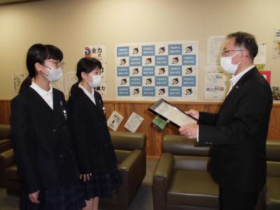 後期環境委員会委員長 岡野定こころさんが 受け取りました。