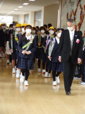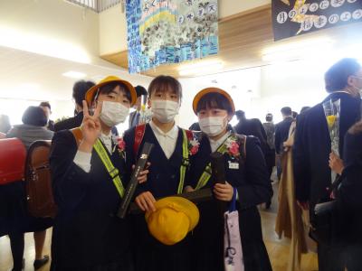 お別れロードを歩く卒業生は,とてもうれしそうでした