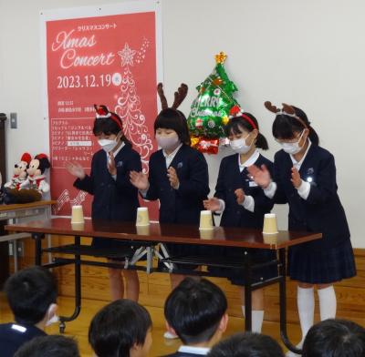 12月19日20日の昼休みに,音楽クラブと有志によるクリスマスコンサートが